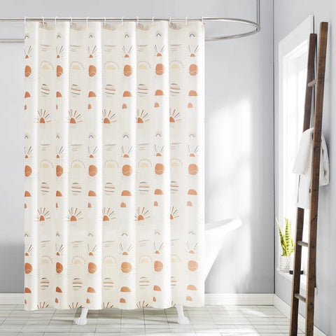 SKU: BHSC2265281476Breathe new life into your bathroom decor with the 72-inch Cream White Orange Sunset Bohemian Pattern Shower Curtain. Showcasing a boho inspired printed design, this 72-inch Cream White Orange Sunset Bohemian Pattern Shower Curtain is the complete solution to keeping floors free of splashing water. The buttonhole top design allows for easy ring installation and sturdy hanging. This set includes 1 printed shower curtain, 12 plastic rings for easy sliding, and 1 mini tote printed with the same design. The water-resistant mini tote is great for toiletries, shoes, the beach, shopping, or lunch on the go. Machine wash cold on gentle cycle. Use non-chlorine bleach when needed. Tumble dry on low heat, using a cool iron as needed.