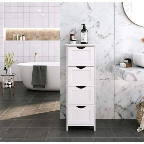 • Modern Farmhouse 4-Drawer Bathroom Linen Floor Cabinet in White Wood Finish