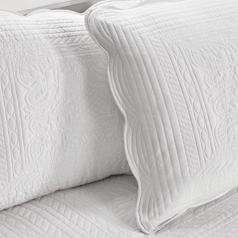 - Quilted bedding featuring scallop edges with a prewash finish