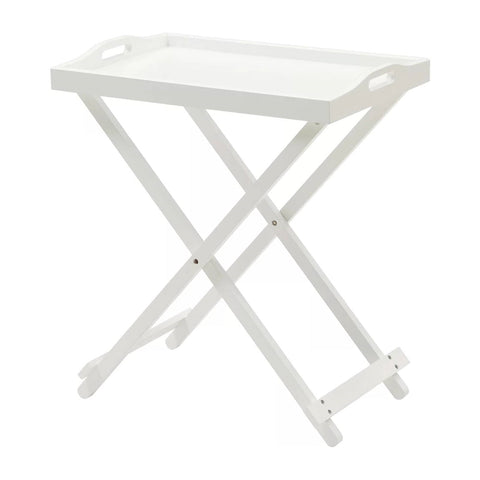 - Folding TV Tray Bedside Table in White Wood Finish