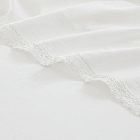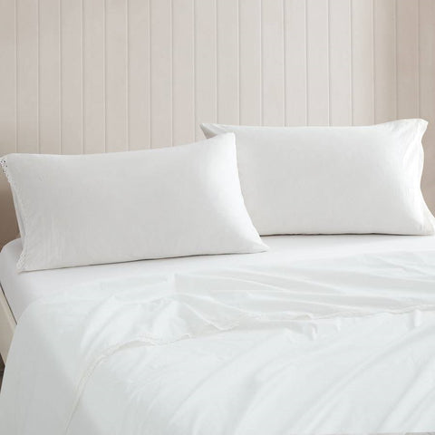King Size 4 Piece 100-Percent Cotton Sheet Set in White with Lace Trim