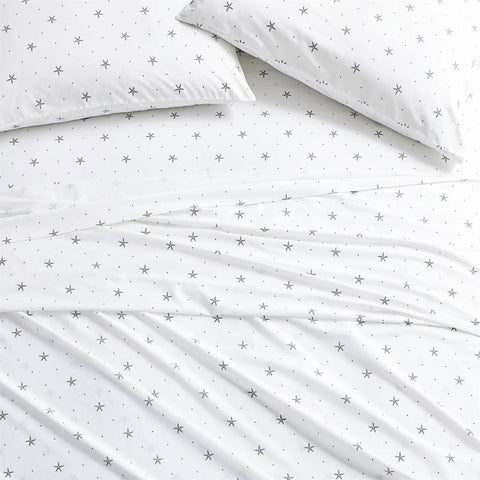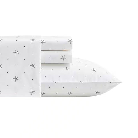 King size Coastal Beach Starfish White Navy Red 100-Percent Cotton Sheet Set