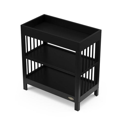 SKU: GRTEQ51910Easy-to-match design, timeless style, and storage shelves to help keep your nursery organized — introducing the Black Modern Wooden Baby Changing Table with Safety Rail Pad! Changing Table is designed to easily pair with any brand or style of crib. Combining modern style with convenient nursery storage, this Changing Table with Bonus Water-Resistant Changing Pad features 2 open storage shelves to store your nursery and changing essentials. Also, includes a bonus water-resistant baby changing pad with safety strap. Crafted from pine wood, pine wood dowels, wood composites, and tested to meet/exceed the applicable ASTM and CPSIA safety standards. JPMA Certified — meaning it’s been expert tested to meet/exceed all voluntary and mandatory safety standards. Proud recipient of the Parent Tested Parent Approved (PTPA) Seal of Approval for nursery and children’s bedroom furniture, and the 2023 Women's Choice Award for 9 out of 10 Recommended Baby & Kids Furniture.