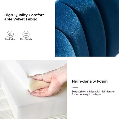 SKU: NBLVTWBC913527648This Navy Blue Velvet Upholstered Wingback Accent Side Chair w/ Gold Metal Legs is the perfect pick for small space. Whether drawn up to your dining table or rounding out your living room with an extra seat, a small side chair like this is a great option wherever you need it. Made with premium velvet fabric, comfortable for skin touch. High-density foam filling with a solid and manufactured wood frame provide comfort and support. The slender polished gold metal legs bring the modern design and add to the timeless fashion of this piece.
