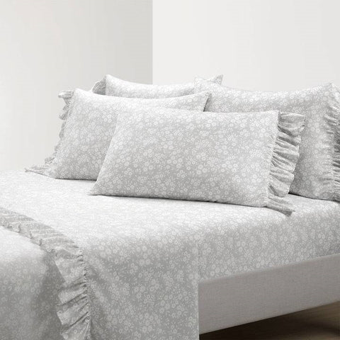 Queen size Grey Ruffle Floral Polyester 6 Piece Sheet Set