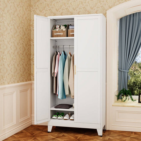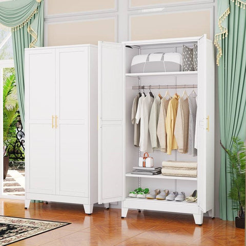 White Metal Multifunctional Storage Armoire Wardrobe Closet