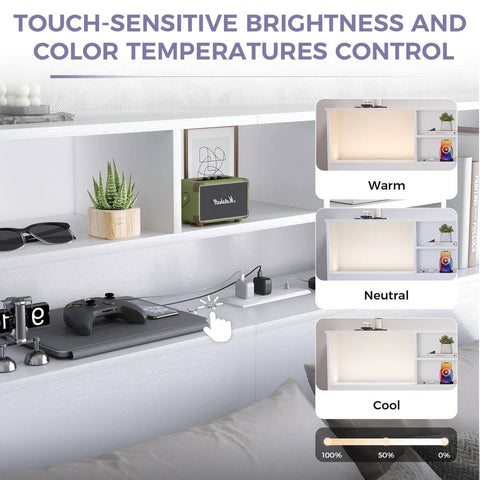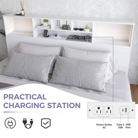 Transform your bedroom into a cozy, organized retreat with our King size Bookcase Headboard in White Wood Finish with LED Lights—a stylish and practical addition that’s more than just a place to rest your pillows. Designed for modern living, it features built-in USB charging ports, keeping your devices close at hand and always charged. The adjustable LED lights let you set the perfect mood, whether you're winding down or reading a book. Meanwhile, the spacious shelves offer plenty of room to store your daily essentials, keeping your space tidy and clutter-free.