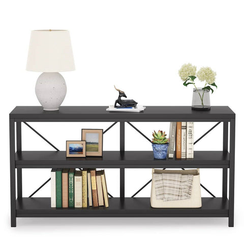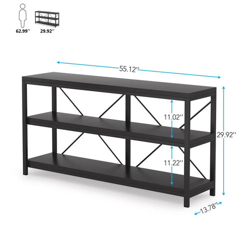 - Industrial 55-inch Black Wood Shelf Sofa Table with Heavy Duty Metal Frame