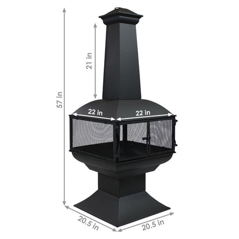 SKU: JULP6544Create a warm and cozy gathering spot on the patio or in the backyard with this unique Large Black Outdoor Steel Chimenea Wood Burning Fire Pit. It offers a unique 360-degree view, so you can gaze on the fire at any angle. This chiminea also includes a log grate to promote better airflow for a better burning fire.