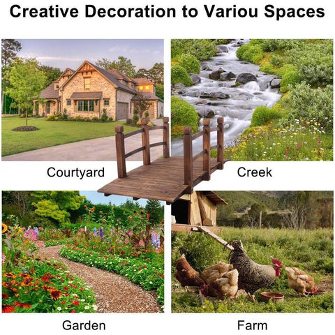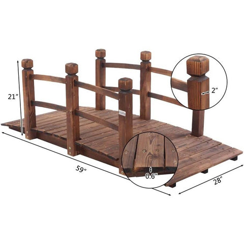 - Decorative Bridge- Carbonized finished fir wood makes it a beautiful and rustic additional walkway to your garden, yard, creek or farm. Dimension: 59"(L) x 28"(W) X 21"(H)