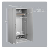 SKU: BLGWDCN2075146382Introducing the Bedroom Armoire Wardrobe Cabinet with Hanging Rail in Light Grey Wood Finish, a remarkable closet organizer in a flawless white finish. This 'armario de ropa closet' and 'mueble para ropa' beautifully merge the concepts of a wardrobe cabinet, free-standing pantry, and kitchen storage cabinets all into one. Crafted with high-quality, non-toxic, and CARB-2-compliant laminated composite woods, this storage cabinet is a perfect blend of durability and elegance. This closet cabinet measures 24.5"D x 32" W x 65"H internally, a compact yet generous size for your 'roperos para guardar ropa'. The cabinet comes with two soft-edge doors adjustable with six-way European style hinges and satin nickel finishing, merging seamlessly with any room aesthetics. Within this closet cabinet, you'll find a convenient hanging rail and two fixed shelves, making it an effective 'coat closet' or armoire wardrobe closet. This tall storage cabinet doubles as a 'food pantry cabinet for a kitchen', equipped with a well-designed storage rack, making it an excellent addition to your storage cabinets with doors. The closet's depth of 24.5" makes it an ideal fit for hangars, jackets, and dresses, making the clothing storage process a breeze. This cabinet arrives flat-packed with an easy-to-follow instructional booklet for quick assembly.